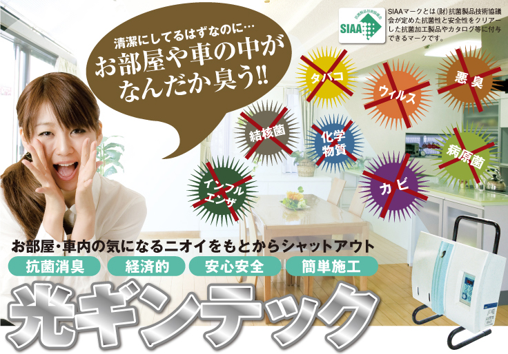 うちはそば屋をやっているのですが、全面禁煙には出来ず、分煙をしていました。喚起など十分行っているのですが、それでも煙草を吸わないお客様からタバコ臭いとニオイを指摘されたことがあり光ギンテックを施工してもらいました。タバコのニオイも消えるうえに、抗菌作用まであるので、一石二鳥で得した感じです。